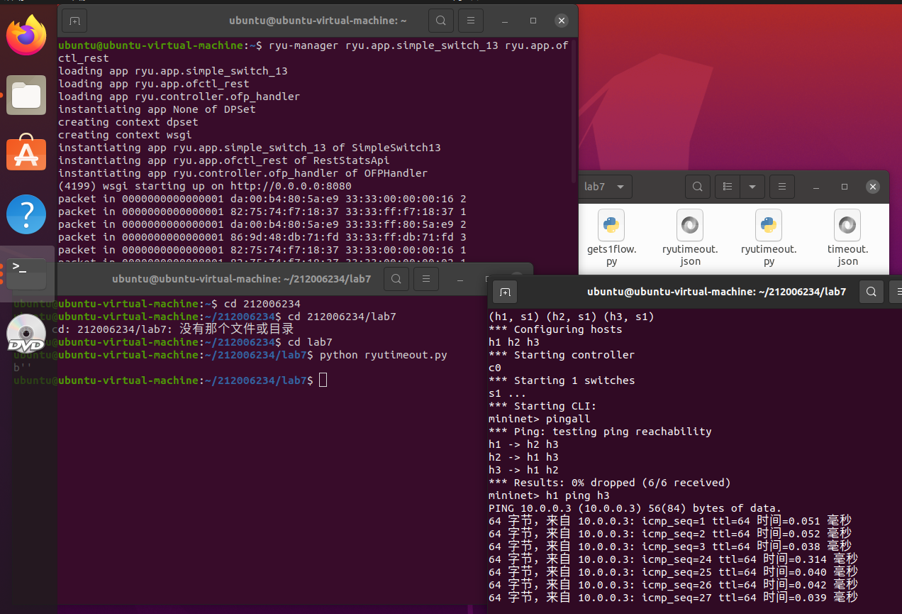 (1) 实现上述OpenDaylight实验拓扑上相同的硬超时流表下发。