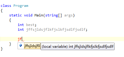 你会发现智能提示窗口无法完整显示较长的变量名了。