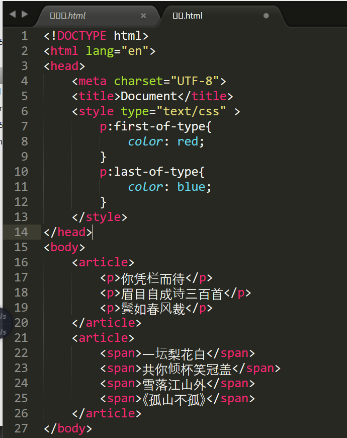 :nth-last-of-type(n) p:nth-last-of-type(2) 同上,但是从最后一个子元素开始计数。