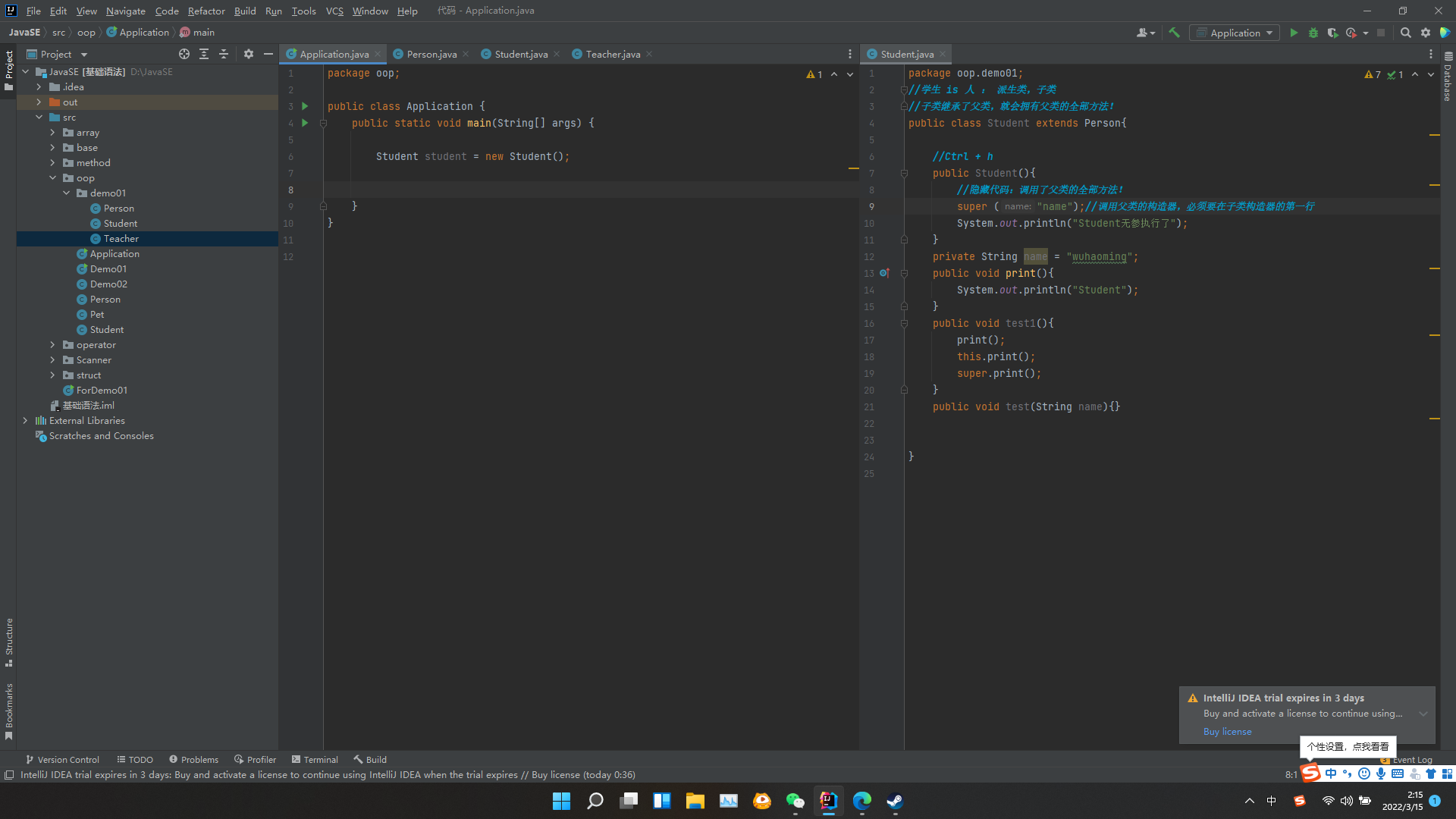 1.super调用父类的构造方法,必须在构造方法的第一个