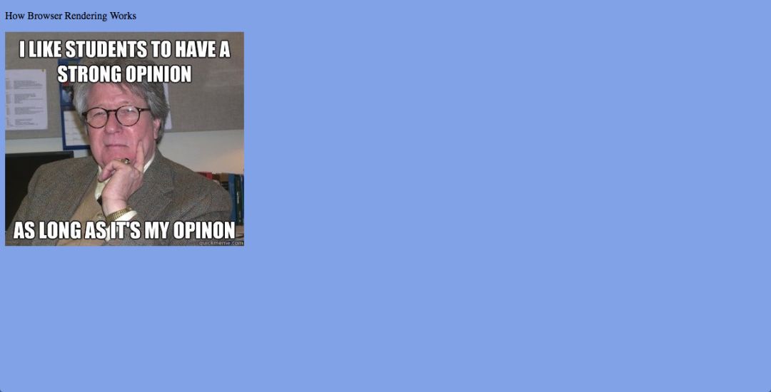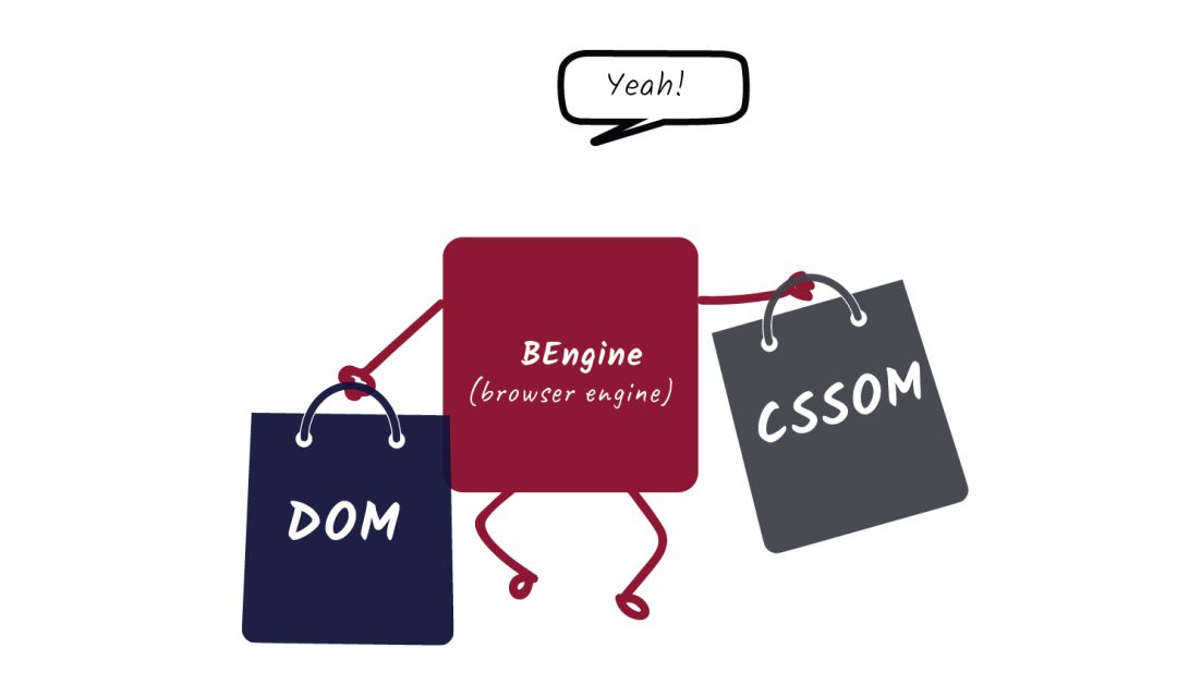 一切顺利。浏览器有了 DOM 和 CSSOM 对象。现在,我们能在屏幕上呈现一些东西了吗?