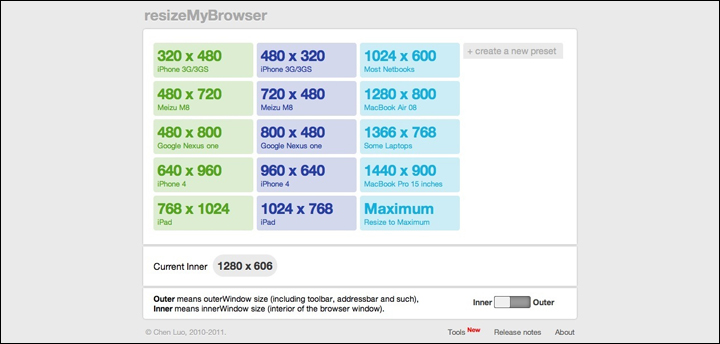 resizeMyBrowser是一款不错的网页兼容性测试工具,让用户轻松重置浏览器大小,一站式体验时下最流行的尺寸或个性化定制。