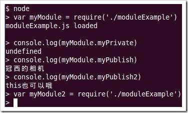 //moduleExample.js var myPrivate = '艳照,藏着'; exports.myPublish = '冠西的相机'; this.myPublish2 = 'this也可以哦'; console.log('moduleExample.js loaded \n');