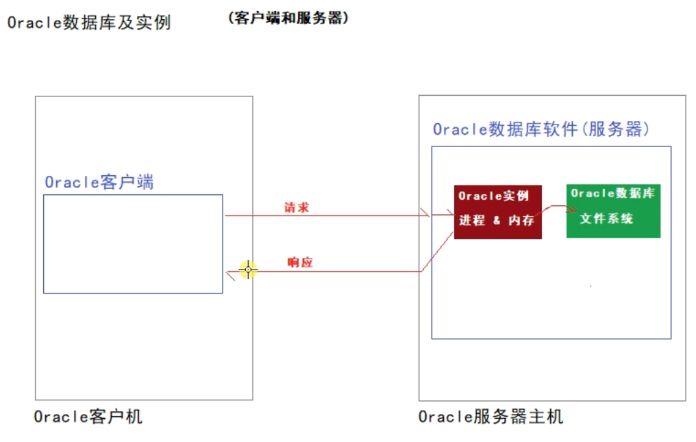 当oracle客户端发送请求给 oracle服务器的时候,服务器会将请求分发给服务器端的实例,实例接收到请求里的数据后,将数据存储在数据库文件系统,然后为客户端用户提供响应。