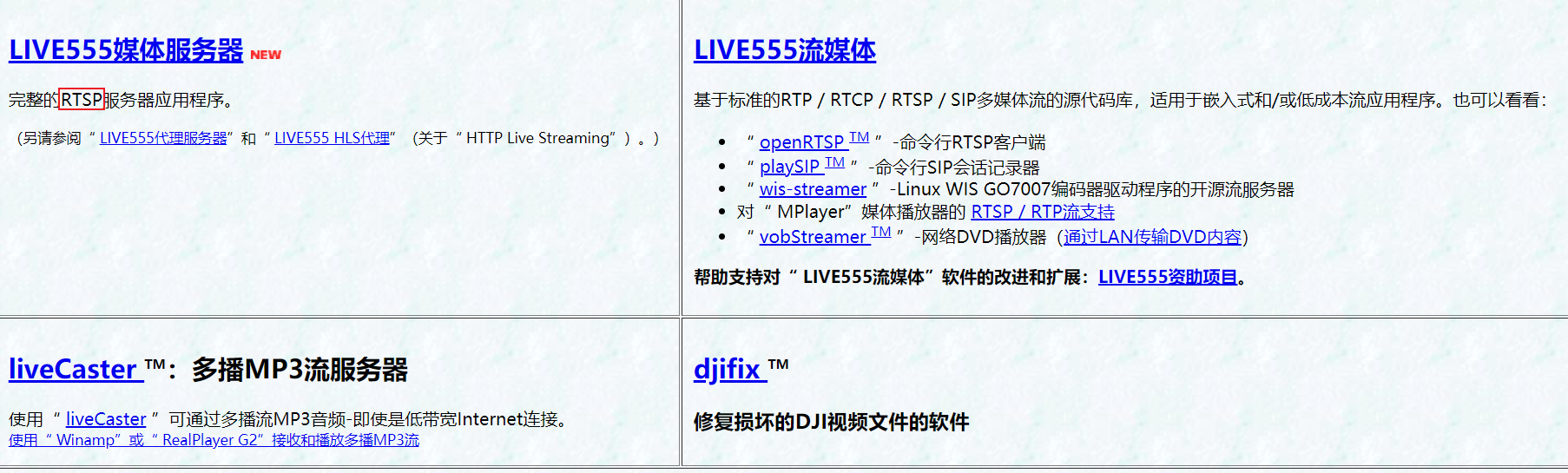 特点:支持RTSP协议、网络资源较少、官方说明文档较少、支持多种音视频编码