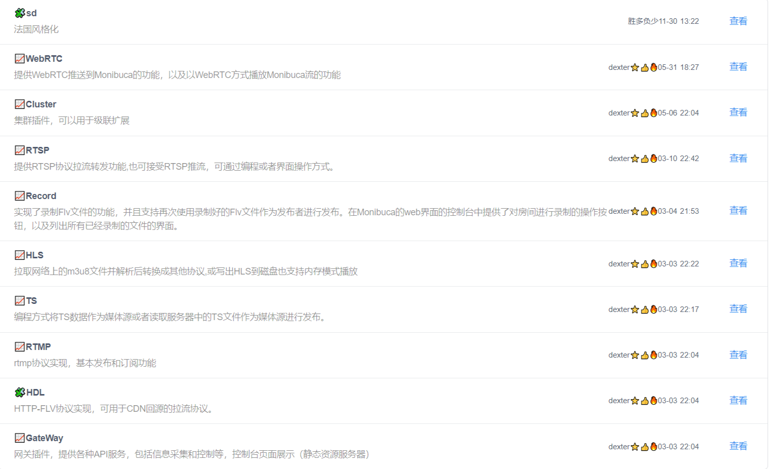 较好的一点是使用模块化来实现功能:plugins-monibuca