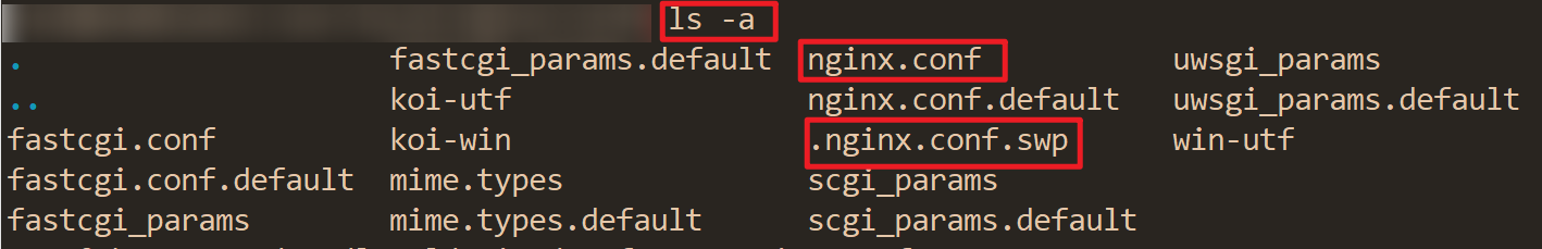 使用指令ls -a或ls -la列出当前文件夹下的所有文件,并使用指令rm .nginx.conf.swp对该文件进行删除