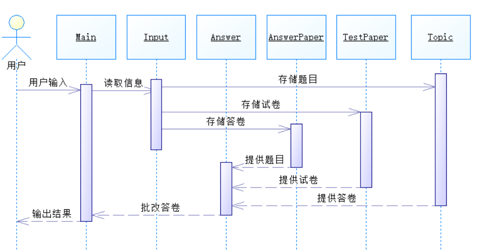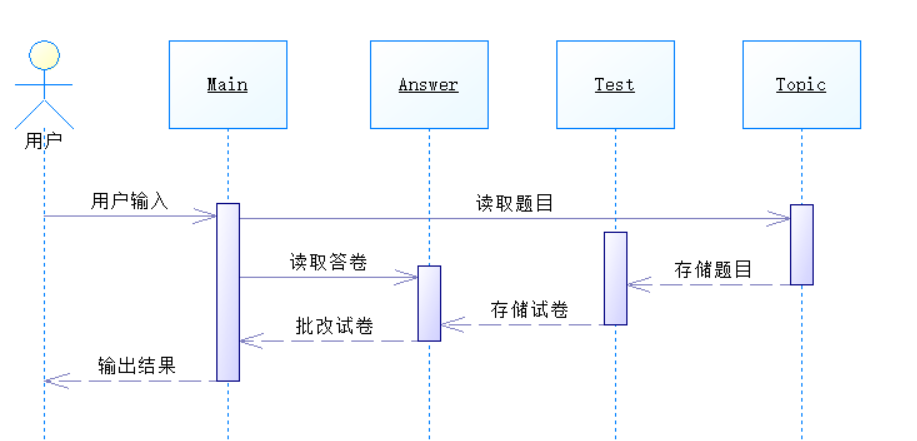 (3)Answer类:用于存储试卷,能够读取并存储用户输入的试卷和答卷,并在批改完试卷后将对应的信息进行输出。