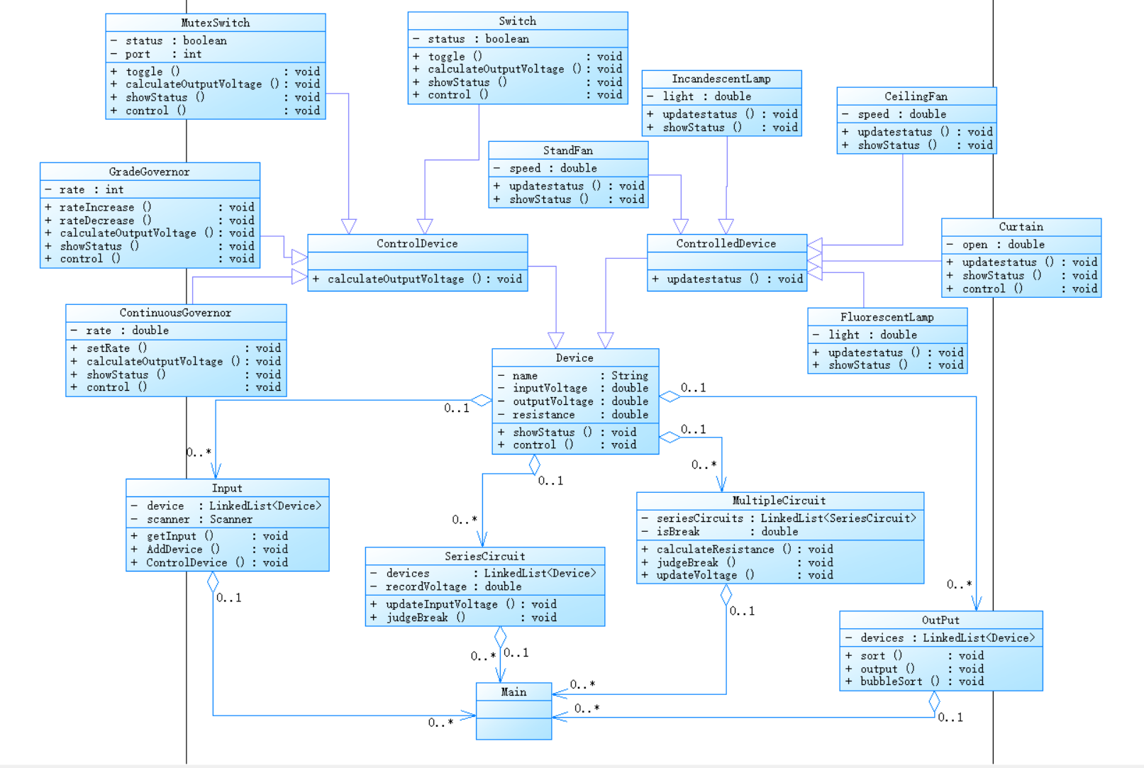 (7)ControlledDevice类:受控设备类,主要是灯,风扇等受电路控制的设备的父类。