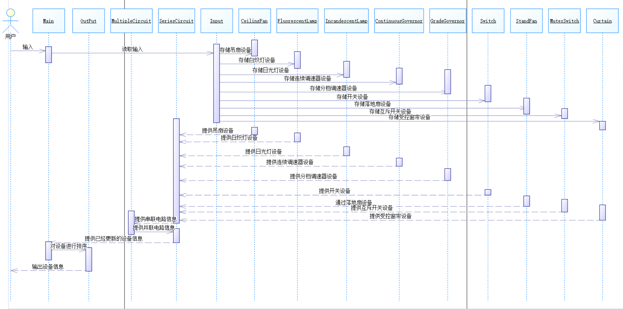 因为这次大作业增加了设备两端电位的输出以及电流的判断,所以在SeriesCircuit类中增加了电流计算,以及开关等没有电阻的设备的通过电流的计算的函数,以及并联电路断开的那条路是否会受到其他没有断开的路的电流的影响的判断。