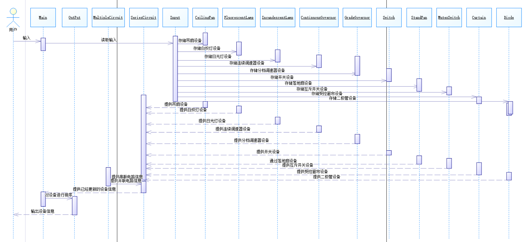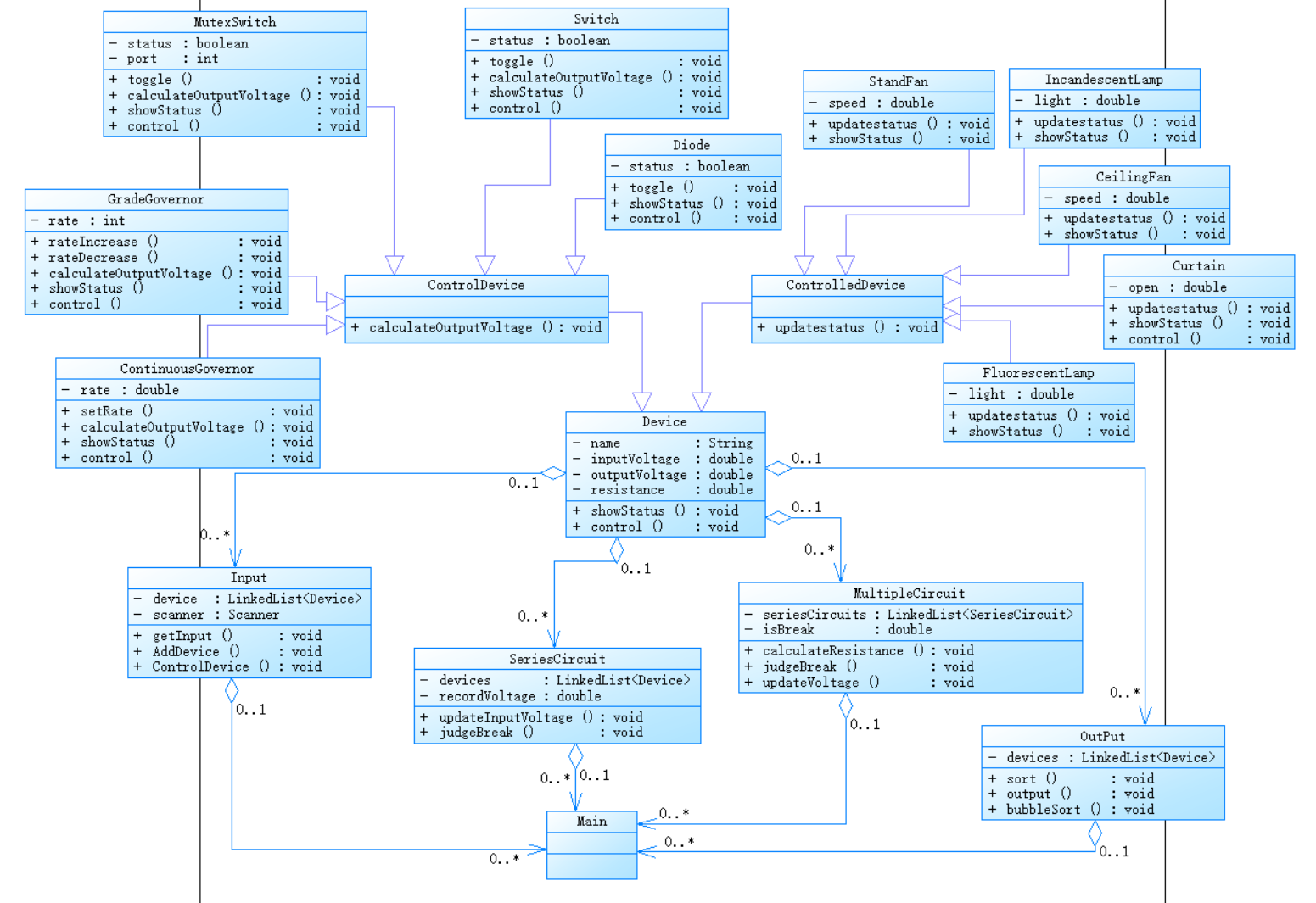 (15)MultipleCircuit类:并联电路类,主要是对并联电路的电路情况进行分析,并更新电路中设备的状态。