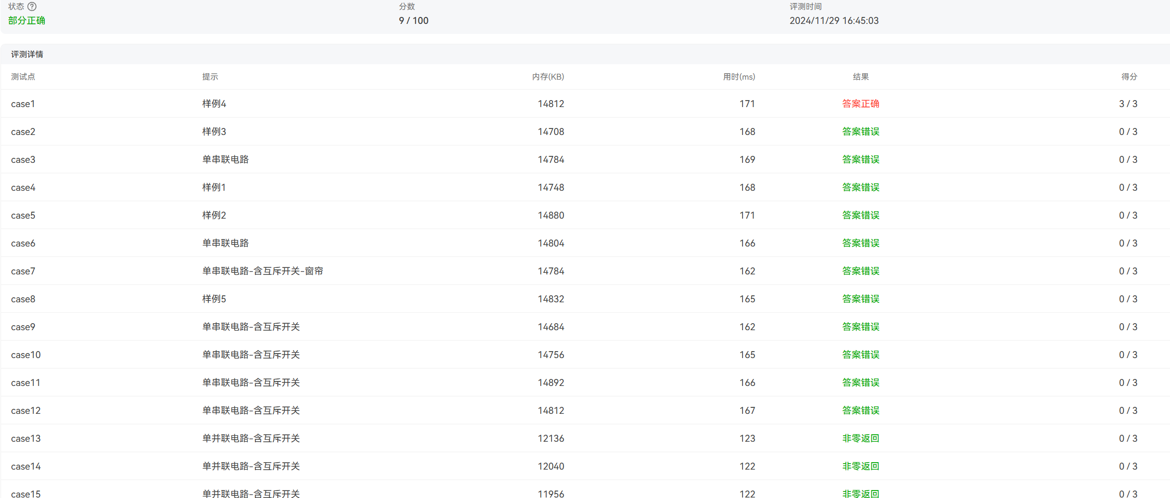 这两次大作业总体来说还是非常具有挑战性的,尤其是在增加了互斥开关同时还要显示各个端口的电位的时候,需要考虑的东西非常多,一不小心就会出错。不过这两次大作业也是非常大程度的训练了我的代码调试能力,因为这两次大作业涉及了非常多的计算,以及状态的更新如果错了,很难通过代码看出问题,需要一步步调试与实践计算出来的值进行对比最后将错误点锁定。而且这两次大作业让我对类的使用有有了更深层次的理解,让我可以更加熟练的使用抽象类来解决问题。不过我还是希望以后像最后面几题难度这么大的题可以多给一些测试用例,因为有一些点实在是太难想到了,而且自己编写测试用例太难也太耗费时间了,更何况后面还要进行调试,那花费的时间就更多了,有时候别人也没有全对所以也根本不知道自己的测试用例到底对不对。