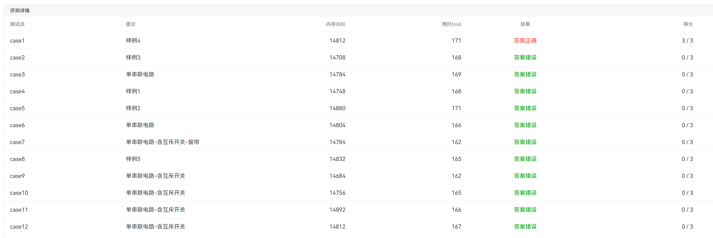 避免重复计算:在当前的设计中,尤其是在串联电路和并联电路的处理中,每次设备状态的更新可能涉及到大量的计算和遍历。为避免重复计算,可以考虑为每个设备增加状态缓存。例如,每个设备可以缓存其电流、电压等重要参数,并通过标志位标记设备状态是否已经更新。在电路状态更新时,只有当设备状态发生变化时,才重新计算电流或电压。这样可以减少不必要的重复计算,提高程序的性能。