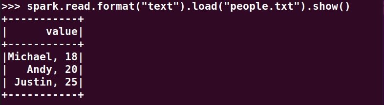 spark.read.format("text").load("people.txt")(注:执行这条命令前,需要把相关的文件上传至hdfs中)