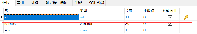 最后还有个钥匙:叫做主键,主键名是不能重复的,点击下后有个小钥匙。