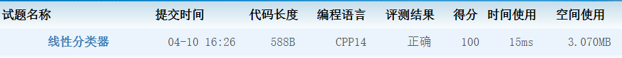 #include <iostream> using namespace std; const int N = 1010; typedef long long LL; // 两个1e6相乘会爆int,因此需要用到long long int n, m, x[N], y[N]; char str[N]; int main() { cin >> n >> m; for (int i = 1; i <= n; i ++ ) scanf("%d%d%s", &x[i], &y[i], &str[i]); while (m -- ) { int a, b, c, A = 0, B = 0; // A和B用来计数属于A区域或B区域的每个点是否满足 cin >> a >> b >> c; for (int i = 1; i <= n; i ++ ) // 这里只讨论A上B下的情况,另一种是对称的 { if (str[i] == 'A' && a + (LL)b * x[i] + (LL)c * y[i] > 0) A ++ ; if (str[i] == 'B' && a + (LL)b * x[i] + (LL)c * y[i] < 0) B ++ ; } if (A + B == n || !(A + B)) puts("Yes"); // 如果能完美分割,计数之和要么为n,要么为0 else puts("No"); } return 0; }