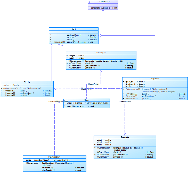 关于卡片的这两道题算是十分简单的了,基础好一些的同学基本上参照指导书两三个小时左右就能写完了,算是父类子类设计的基础题目,主要在于培养学生类设计的良好习惯以及多态的运用。