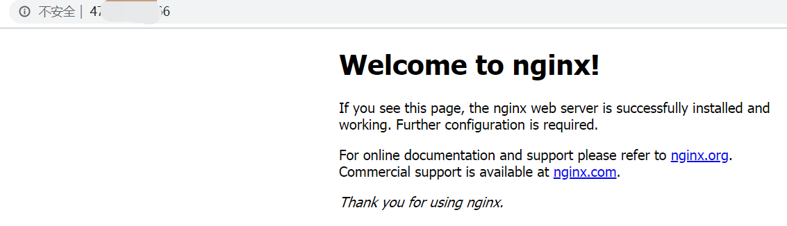 在浏览器中输入IP地址,可以看到默认的Nginx网页说明安装成功