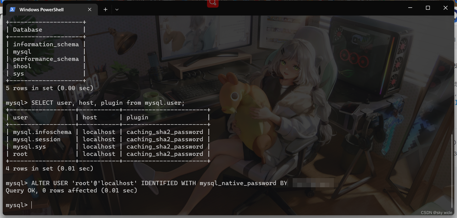 一般查看到的加密规则都为caching_sha2_password,更改加密方式语句: