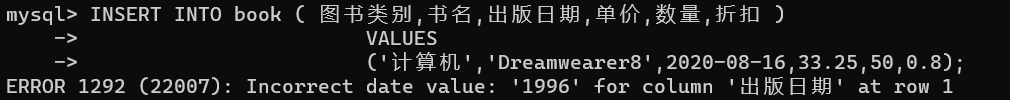 2. Incorrect date value: '1996' for column '出版日期' at row 1:日期用的是date的话,date的类型是yyyy-MM-dd,你获取的字段不符合格式,可以试试换varchar -