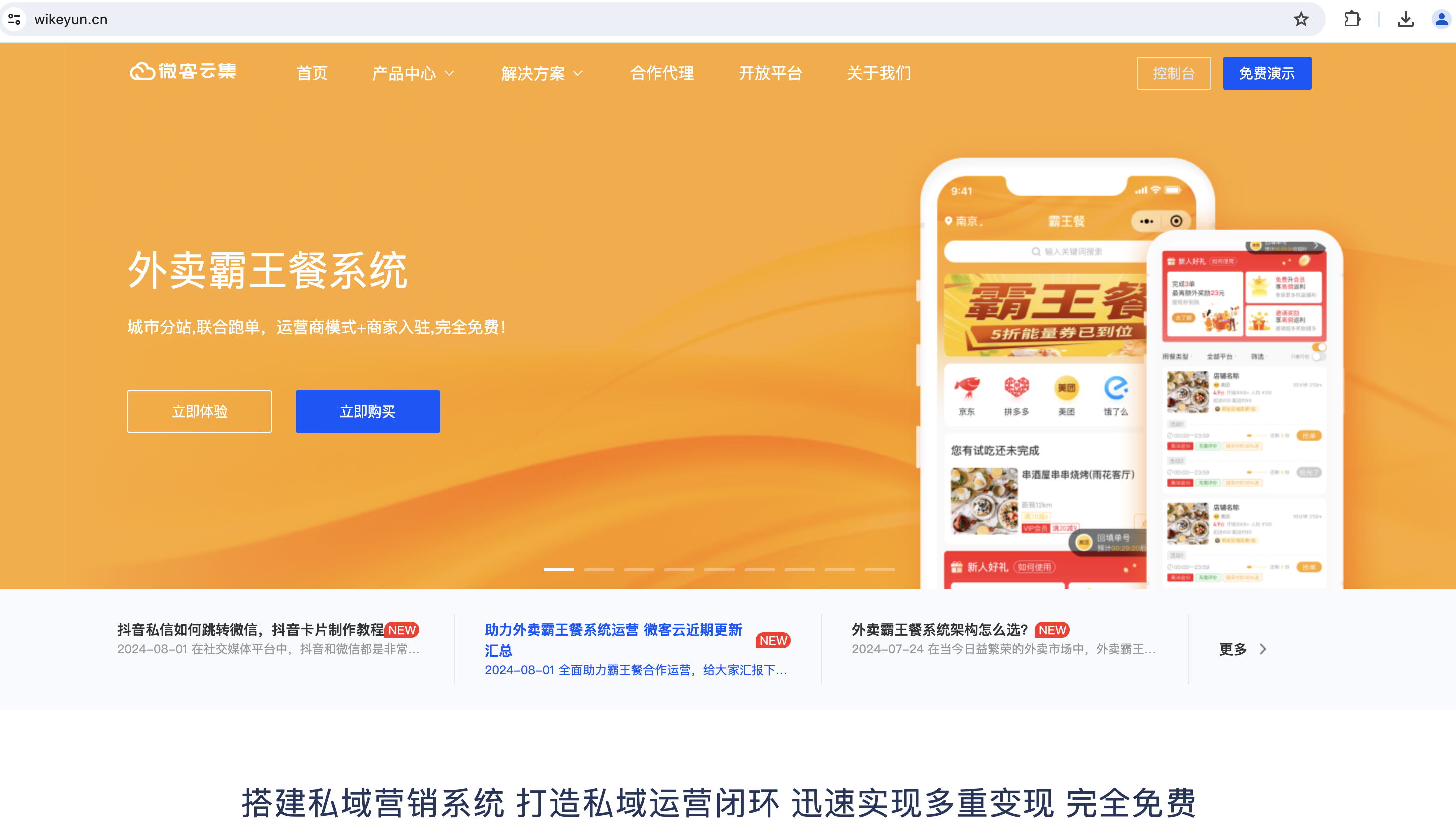 1. 选择合适的外卖霸王餐系统,这里推荐微客云,专业的私域变现系统。