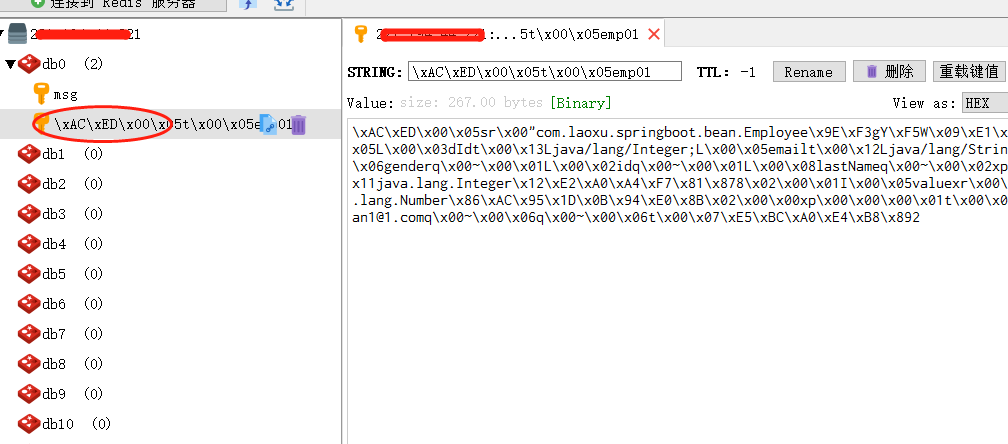 redisTemplate.opsForValue().set("emp01", emp);