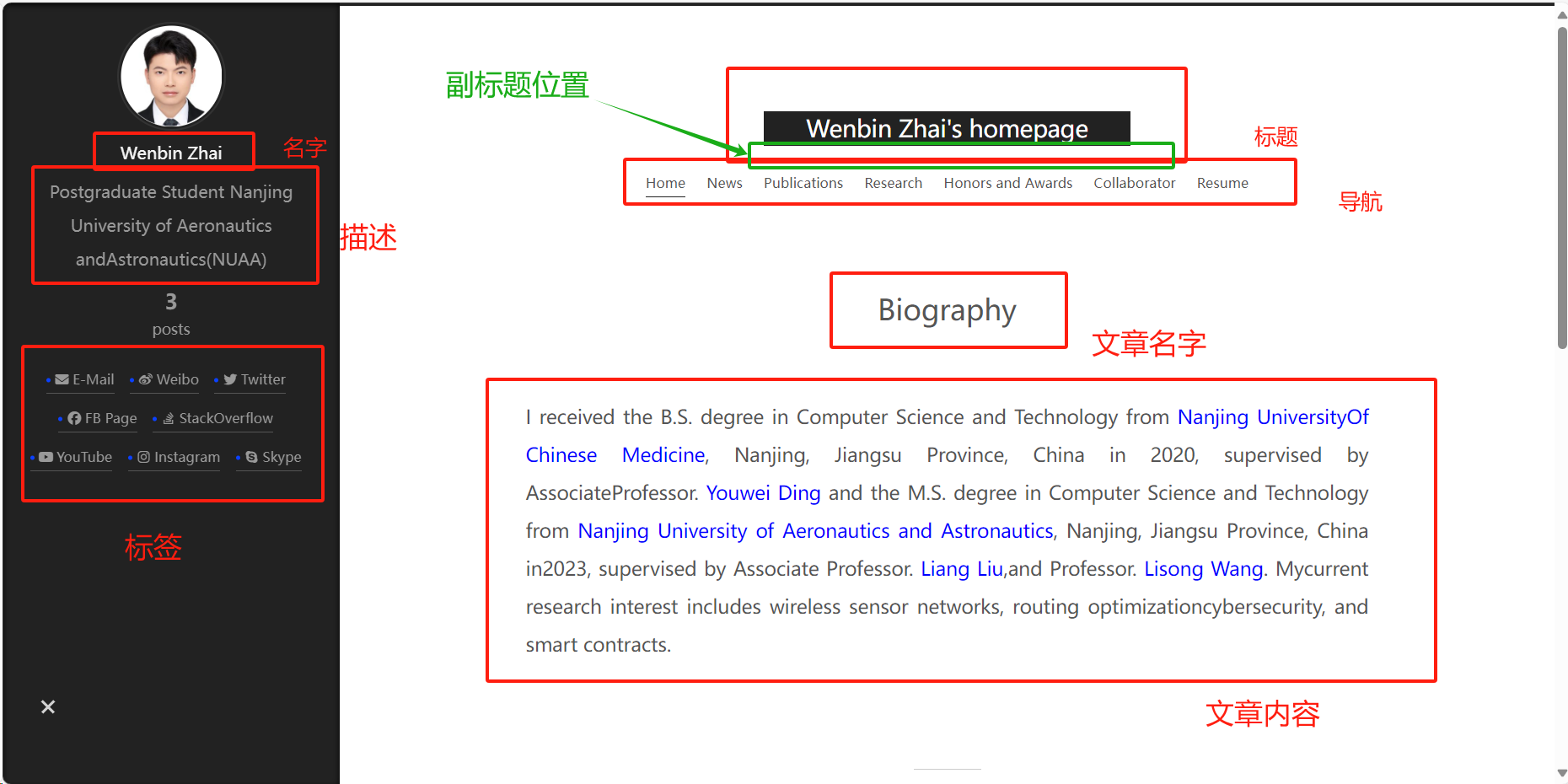 注意:名字和描述都出现在侧边栏,如果希望描述实在标题底下,就把描述内容写在副标题,也就是subtitle