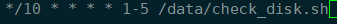 [root@centos8 ~]#cat /usr/bin/disk_check.sh #!/bin/bash # #******************************************************************** #Author: wangxiaochun #QQ: 29308620 #Date: 2020-05-08 #FileName: disk_check.sh #URL: http://www.wangxiaochun.com #Description: The test script #Copyright (C): 2020 All rights reserved #******************************************************************** WARNING=10 df | sed -En '/^\/dev\/sd/s@^([^ ]+).* ([0-9]+)%.*@\1 \2@p'| while read DEVICE USE;do [ $USE -gt $WARNING ] && echo "$DEVICE will be full,USE:$USE" | mail -s diskfull root done [root@centos8 ~]#crontab -l */10 * * * * check_disk.sh