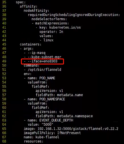 知道了问题原因,解决办法有两个,一是修改网卡名称(风险较大,可能导致网络连不上),二是修改flannel的部署yaml文件(推荐),本文采取第二种修复方法