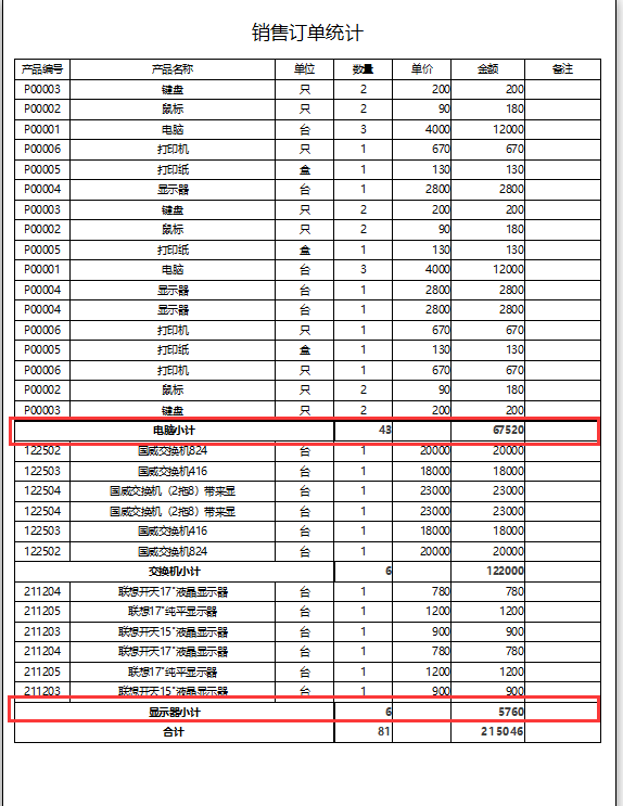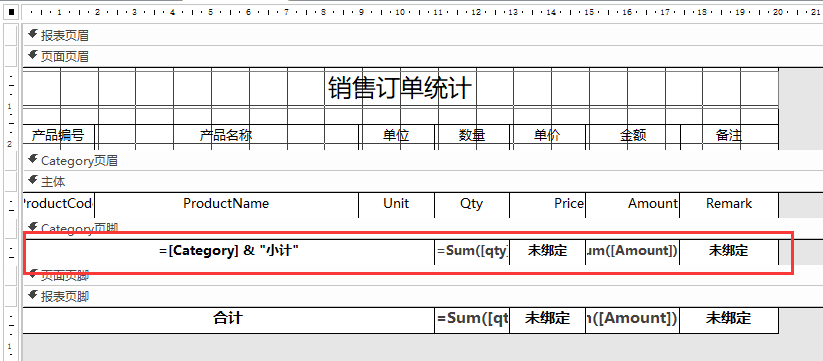 从上图中可以看到,我们的报表可以按类别小计,没错,今天我们就是来讲一下像这样含有小计的报表该怎么做。