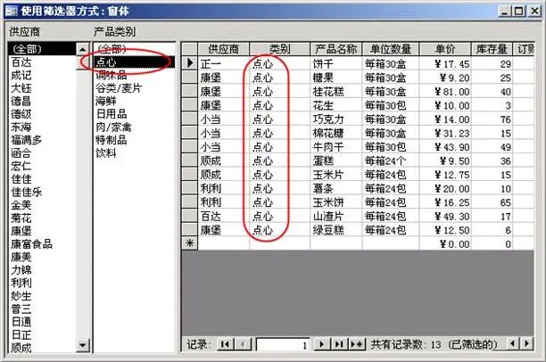 我们需要根据表中的“供应商”和“类别”来进行多层查询,首先基于该表用向导创建一个数据表视图的窗体(图3),将其命名为“子窗体”: