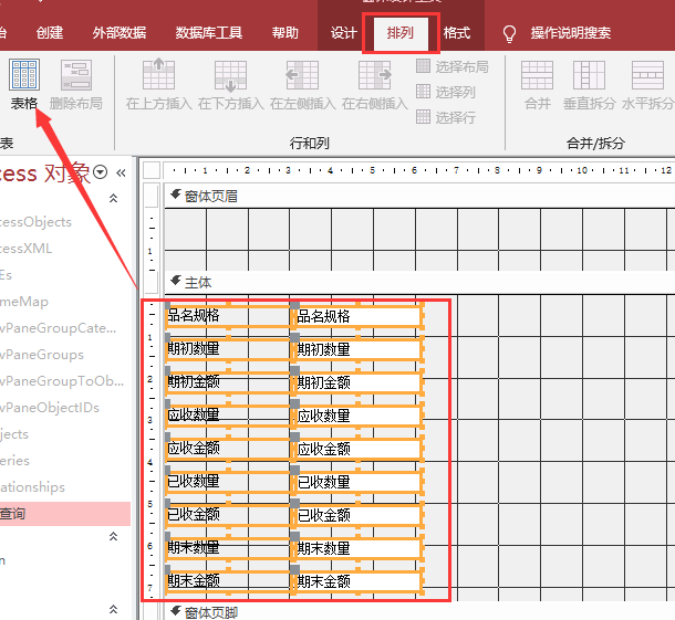 接下去教大家一个快速的方法,先选择所有控件,然后选择排列,接下去点击表格,如下图: