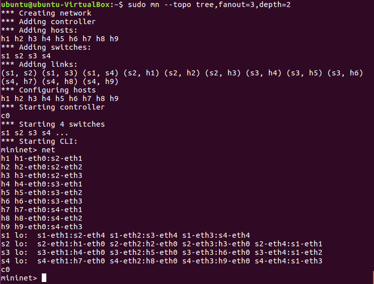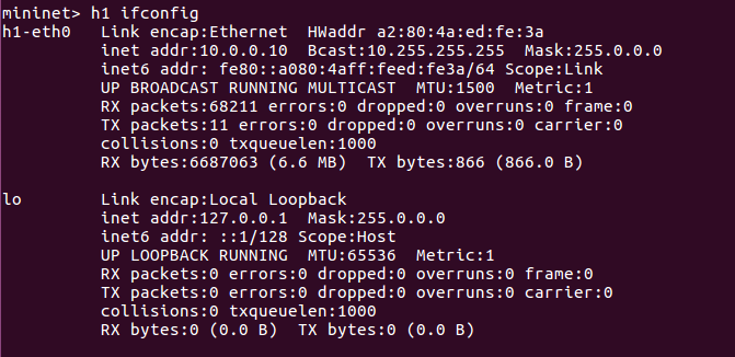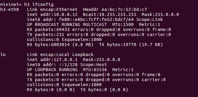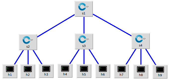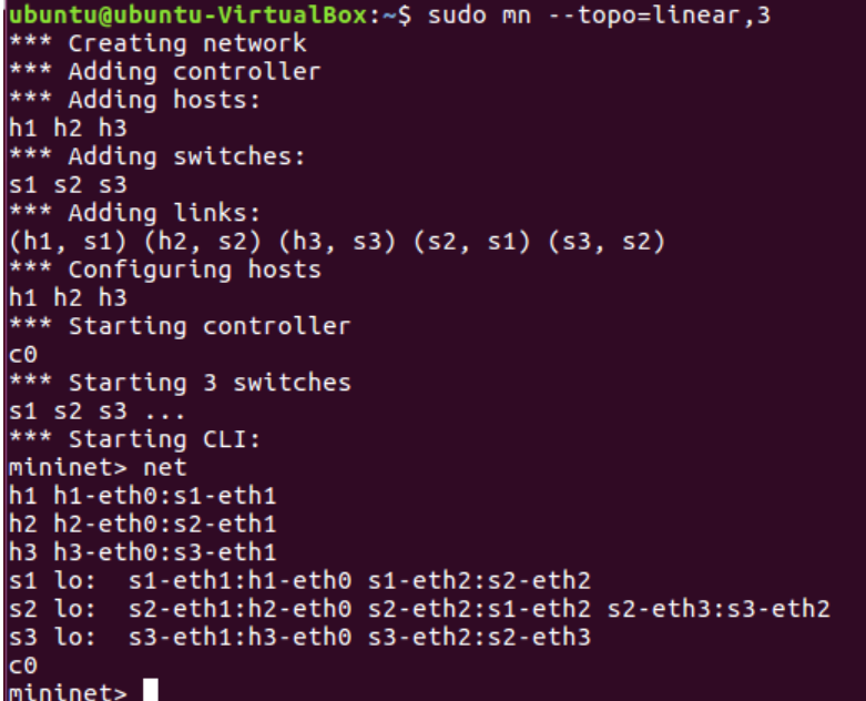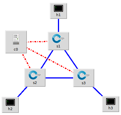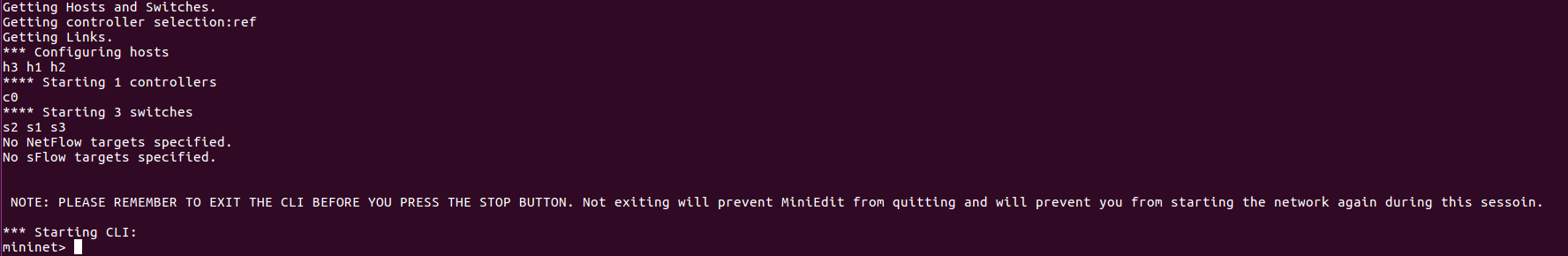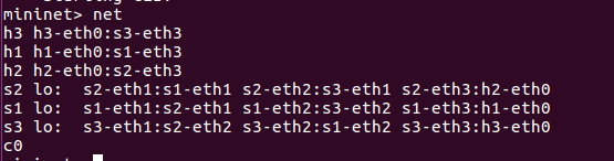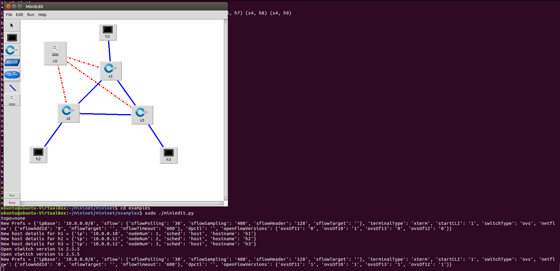 3. 利用可视化工具搭建如下拓扑,并要求支持OpenFlow 1.0 1.1 1.2 1.3,设置h1(10.0.0.10)、h2(10.0.0.11)、h3(10.0.0.12),拓扑搭建完成后使用命令验证主机ip,查看拓扑端口连接情况。