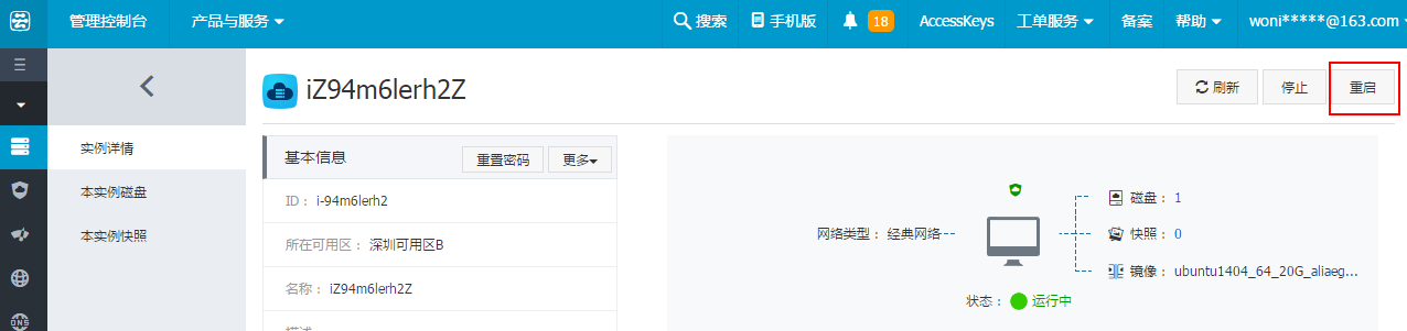 注意查看服务器状态 (直到状态为运行中,即为重启完成,进行下一步操作)