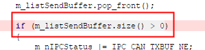 检查'm_listSendBuffer'空虚可能效率低下。 使用m_listSendBuffer.empty()而不是m_listSendBuffer.size()可以更快。 m_listSendBuffer.size()可以占用线性时间,但m_listSendBuffer.empty()保证需要恒定的时间。