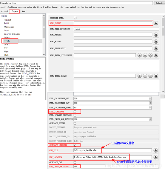 Step7: Expert-HTML设置,这步骤很重要,内容也比较多。详见图示,注意红色的部分,要保持一致。