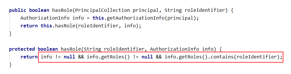 注意:hasRole()方法并没有进行解析过程,因为给用户赋予角色时,只有String类型,所有不需要解析。