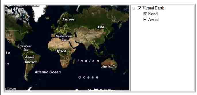 14.运行查看效果,这样成功的把Virtual Earth的卫星图片显示在我们的页面中了。
