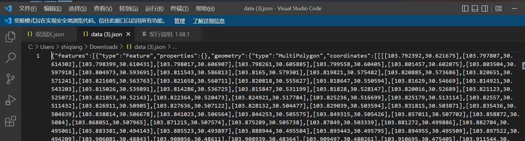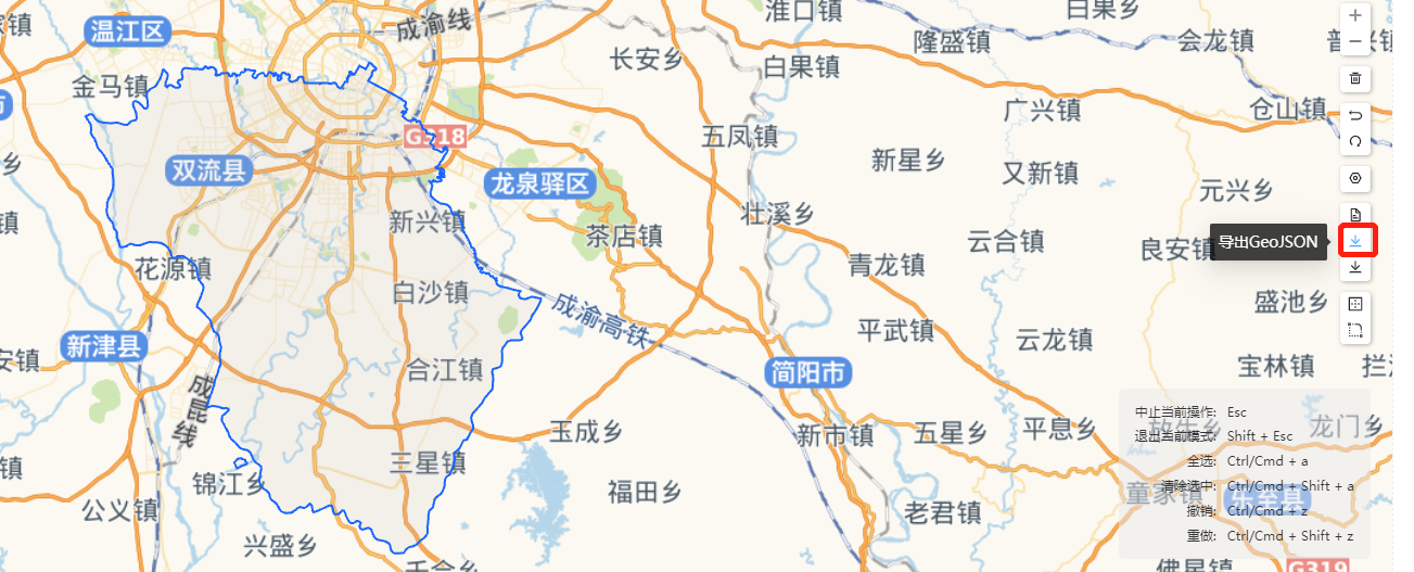 最后将编辑后的结果导出,然后就可以将这个数据文件用于前端展示使用,觉得不放心还可以刷新边界生成器将导出的结果数据文件再导进来查看