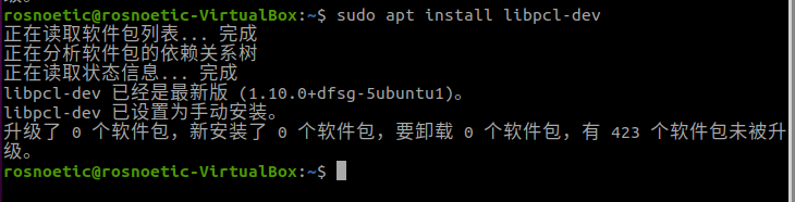 rosnoetic@rosnoetic-VirtualBox:~$ sudo apt install libpcl-dev