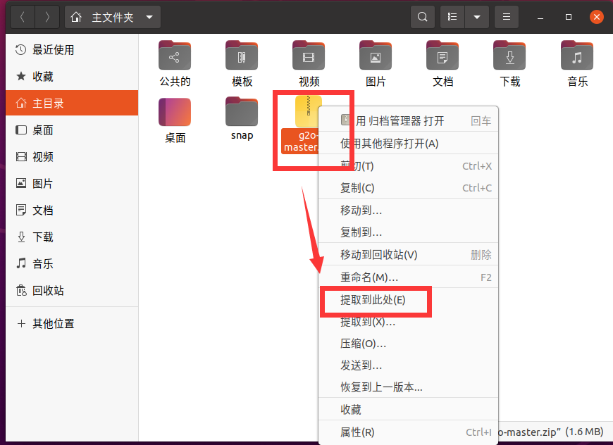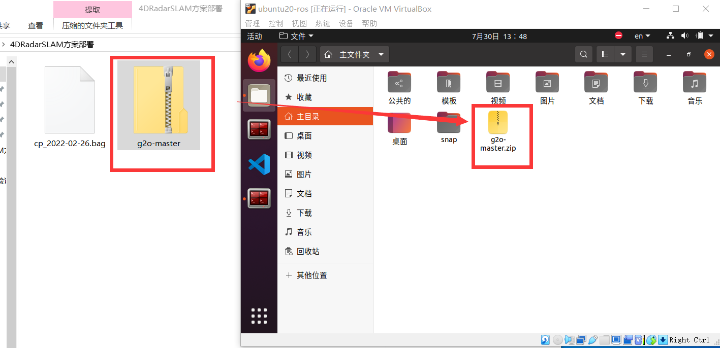 将g2o-master.zip压缩包拖拽至虚拟机的主文件夹下
