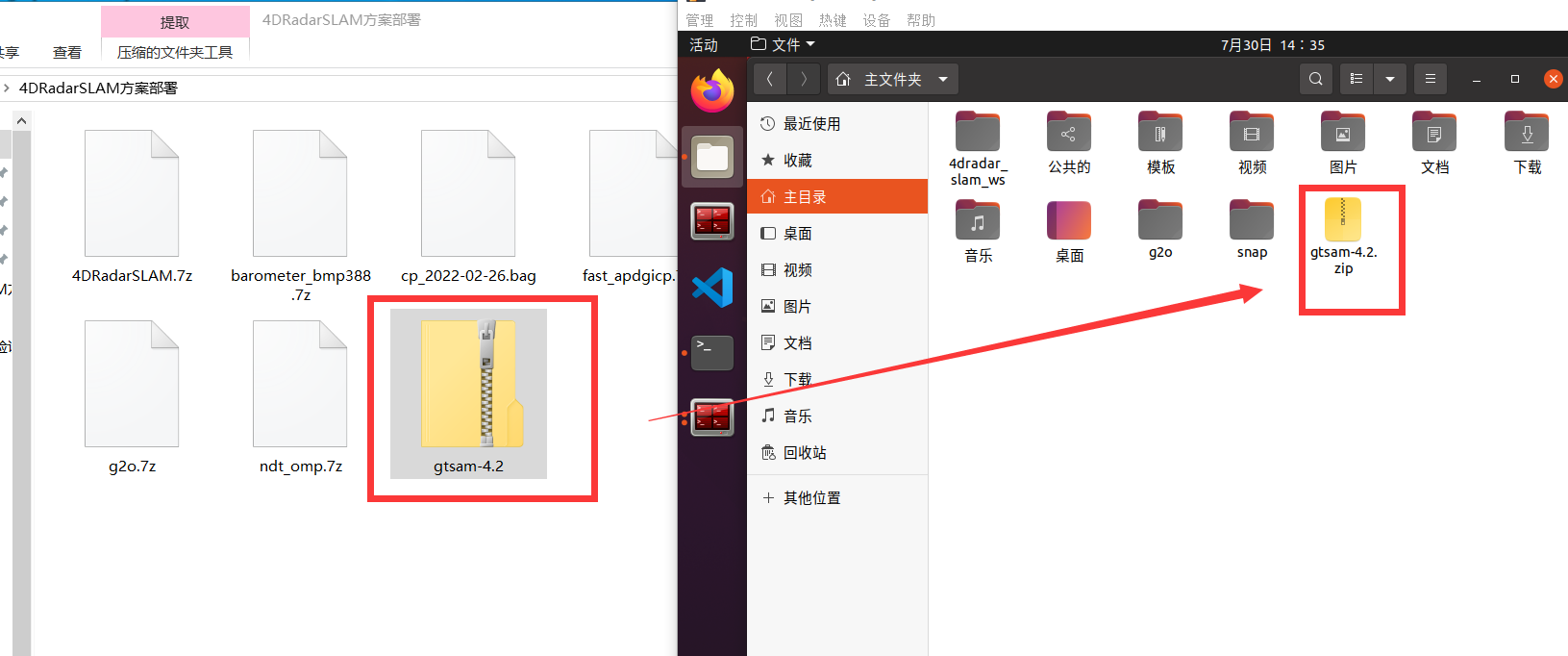 将gtsam压缩包拖拽至虚拟机的主文件夹下,
