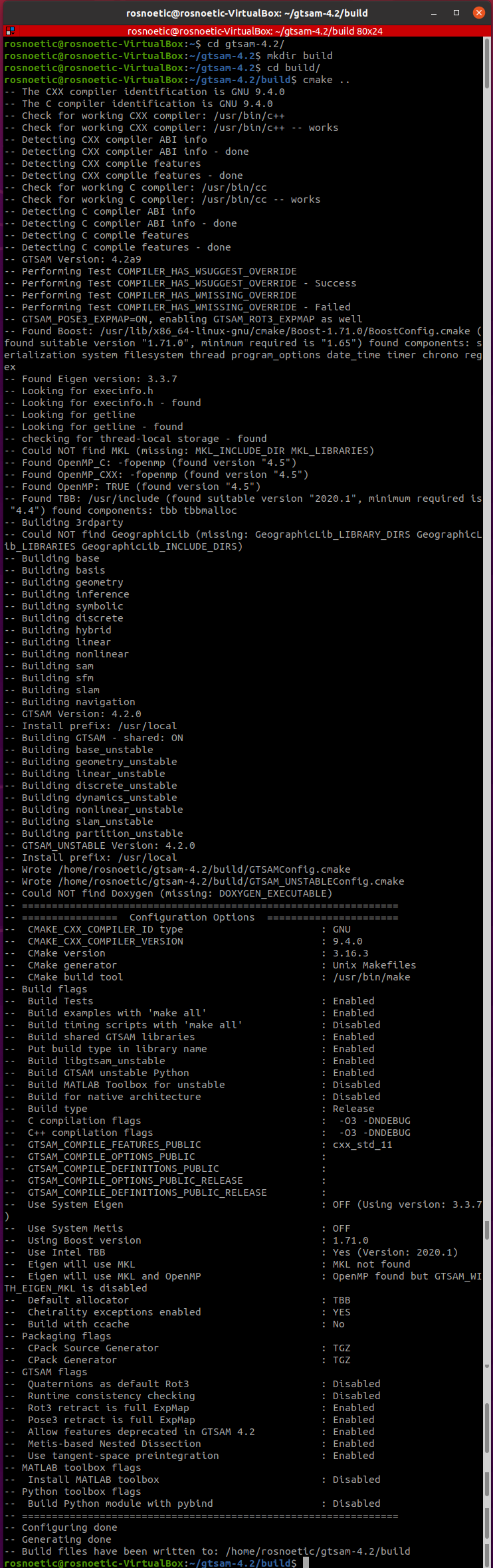 rosnoetic@rosnoetic-VirtualBox:~/gtsam-4.2/build$ cmake ..