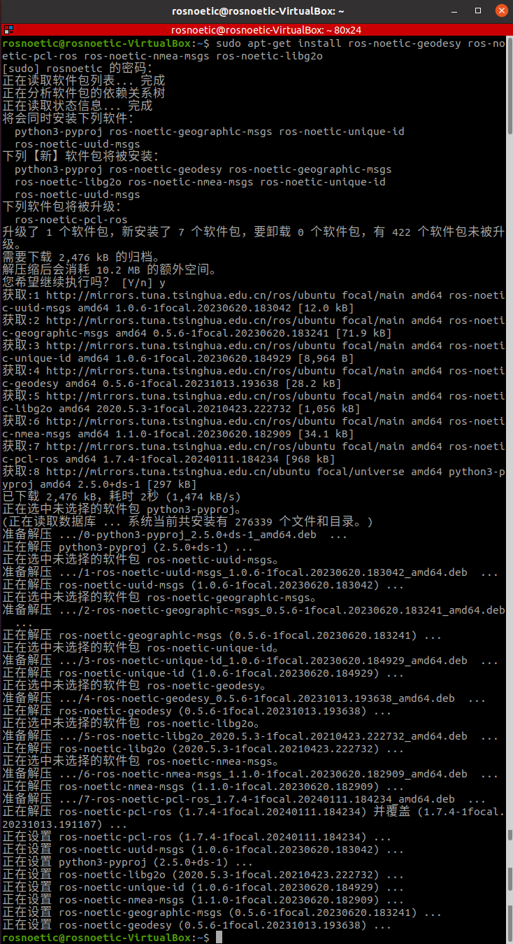 rosnoetic@rosnoetic-VirtualBox:~$ sudo apt-get install ros-noetic-geodesy ros-noetic-pcl-ros ros-noetic-nmea-msgs ros-noetic-libg2o