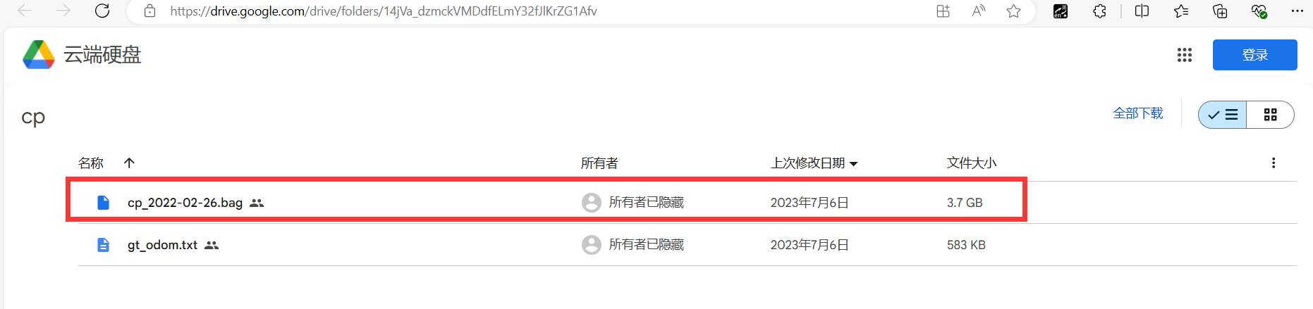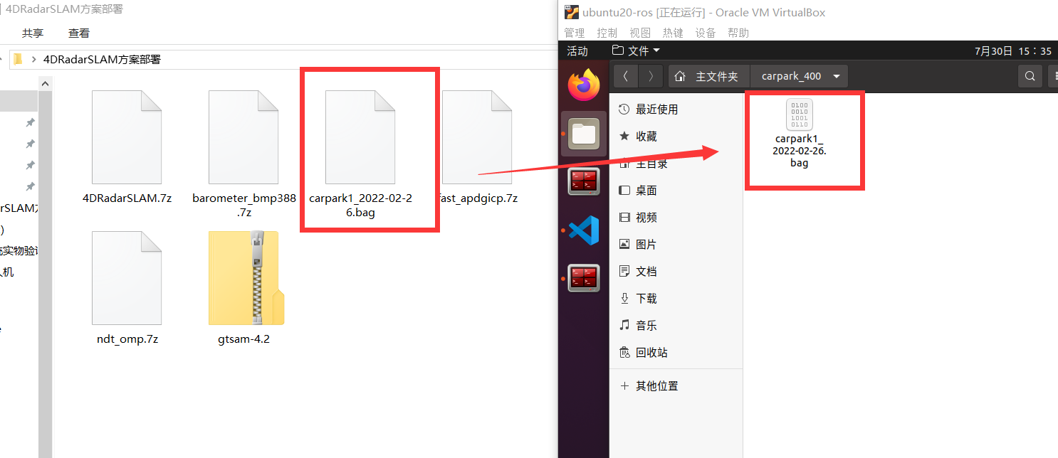 将carpark1_2022-02-26.bag数据集拖拽至carpark_400文件夹: