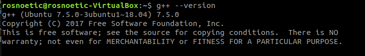 rosnoetic@rosnoetic-VirtualBox:~$ g++ --version
