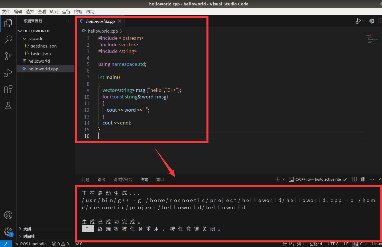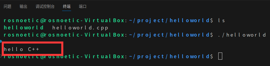 (5)终端中输入 ./helloworld ,即可运行可执行文件helloworld