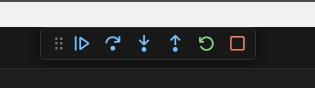 左侧的运行视图显示调试信息,后面有示例。 在代码编辑器的顶部,会出现一个调试控制面板。可以通过抓住左侧的点在屏幕上移动它。