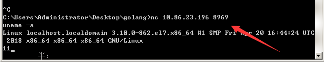 这时可以看到,程序已经执行了,我们可以使用Windows中的nc进行连接了。
