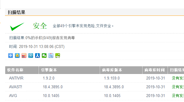 下面是该golang杀毒软件测试的截图,来源于 世界杀毒网